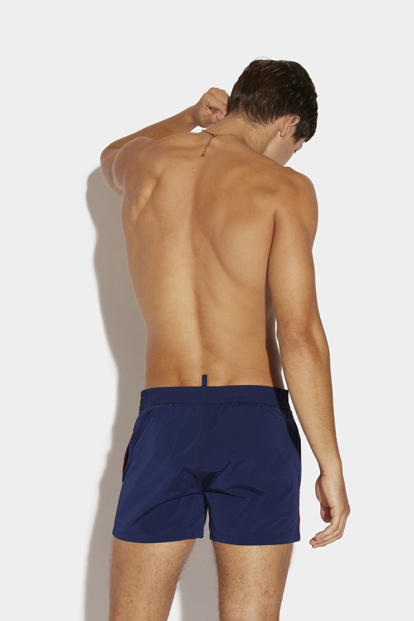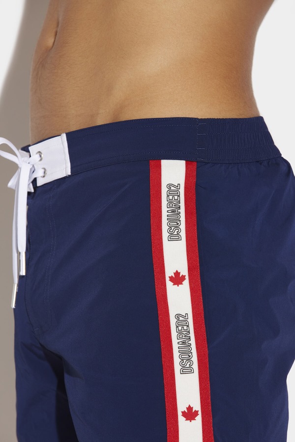 ###100% POLYESTER###The model is 6'2" tall and wears a size M###Subtly bust out some Canadian pride with the Dsquared2 Tape Midi Swim Boxer - a must-have for the beach. Made from poly canvas with a contrast drawstring, these swimming trunks offer comfort, security and style. Plus, the extra details make this piece snatched, such as the side logo tape and rear loop.