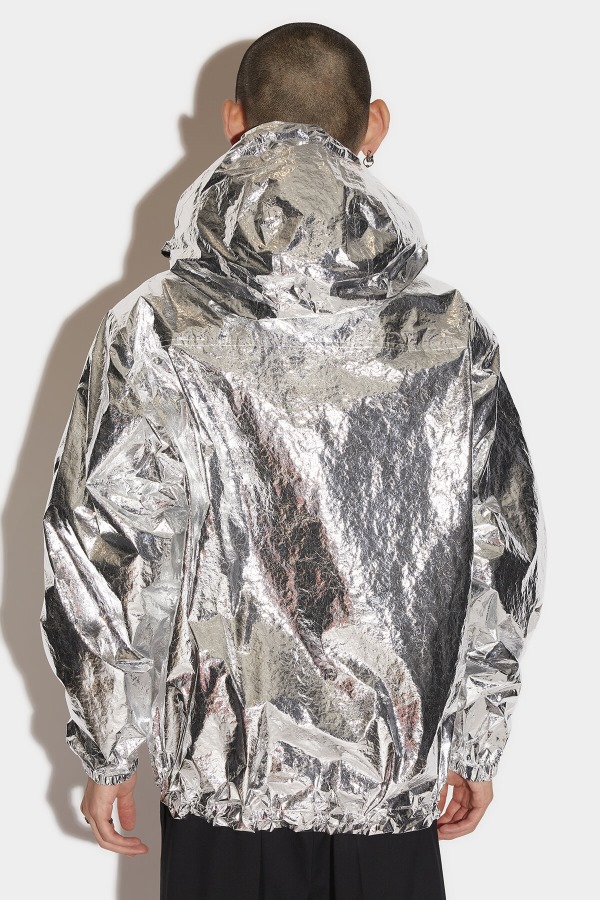 ###FABRIC 100% POLYAMIDE/NYLON. COATING 100% POLYURETHANE###The model is 6'2" tall and wears a size 38###The Big Logo Windbreaker takes the gorpcore trend and blends it with space vibes. This Dsquared2 jacket is made from crushed foil, giving it its signature distressed look. It has an adjustable hood and hem with toggle stoppers so you can wear it however you want. Plus, thereᄀᆵs a maxi ᄀᄚDSQUARED2ᄀᄆ print across the front that really makes a statement.