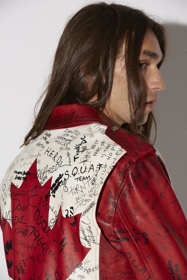 ###MAIN FABRIC: 100% LEATHER. LINING: POLYESTER. POCKET LINING: 100% COTTON.###The model is 6'2" tall and wears a size 38###Channel the punk rock aesthetic in the Kiodo jacket, a timeless design with a contemporary twist. Features all the hallmarks of a classic biker jacket design, reworked in colourblock panels with an all-over doodle print. Pair with a plain white tee, loose fit combat trousers and black bovver boots for a total grunge look.