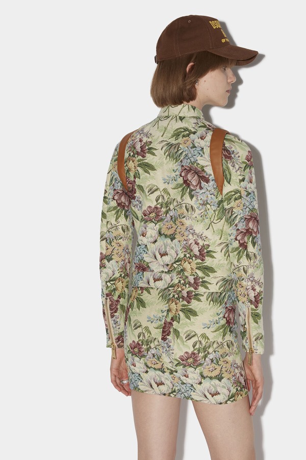 ###MAIN FABRIC: 45% POLYESTER, 38% COTTON, 12% ACRYLIC, 5% OTHER FIBRES. MAIN FABRIC: 67% VISCOSE, 33% SILK. POCKET LINING: 100% POLYESTER.###The model is 5'10' tall and wears a size 6###Stand out from the crowd in this unique jacquard jacket. Features a stunning floral design with brass buttons to add a touch of understated elegance. Pair with associated skirt for a truly memorable summer look.