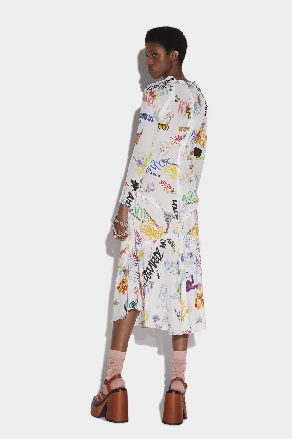 ###MAIN FABRIC: 100% VISCOSE. LINING: 100% POLYESTER.###The model is 5'10' tall and wears a size 6###Exhibit your artistic tendencies in this stunning tea dress. Features artwork designed to highlight your creative imagination. Perfect to take you from day to night when paired with a jacket.