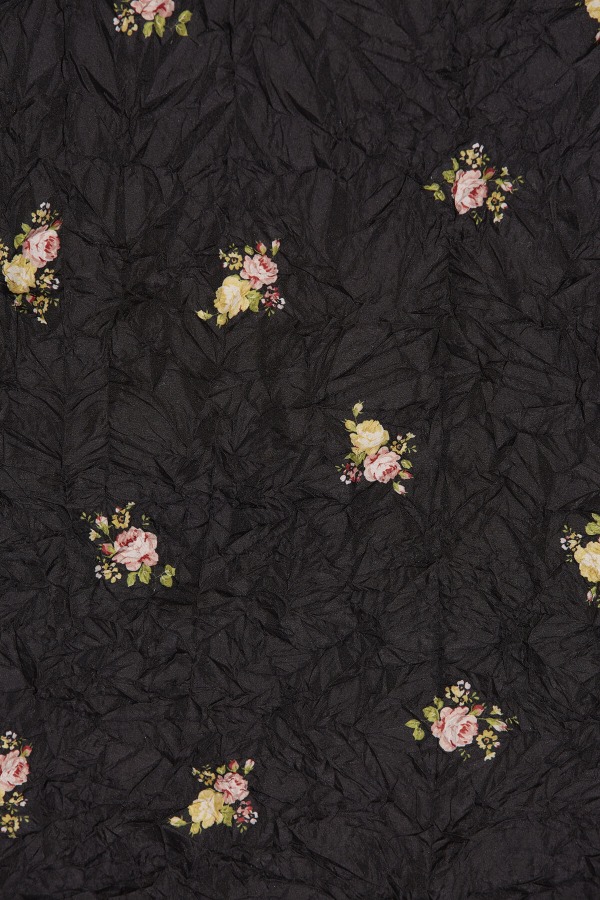 ###100% POLYESTER###The model is 5'10' tall and wears a size 6###This cute mini shift dress with a funnel neck exudes summer chic. The lightweight crepon fabric features an all-over rose motif and wrinkled effect for a textured feel. Team with the Spencer cropped jacket for insouciant styling, finished with strappy sandals or ankle boots.