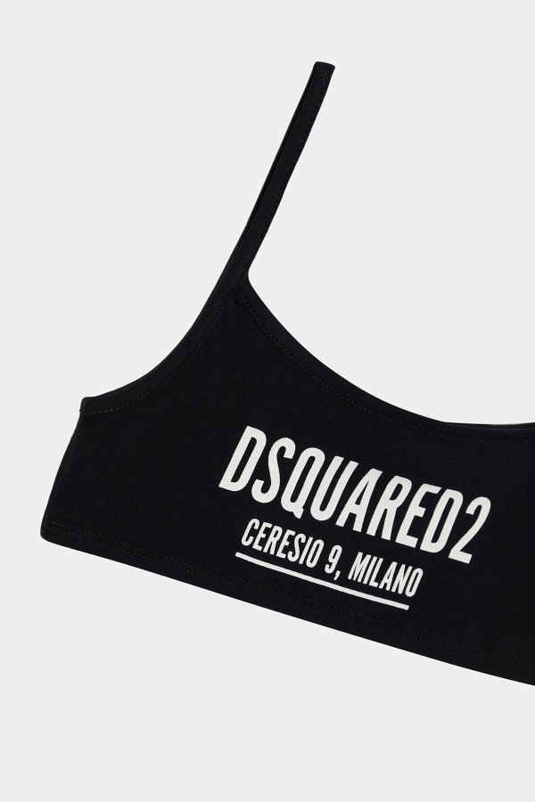 ###95% COTTON, 5% ELASTANE.###This sports bra in stretch cotton jersey delivers on iconic style for young athletes with contrasting "DSQUARED2 CERESIO 9, MILANO" print.
