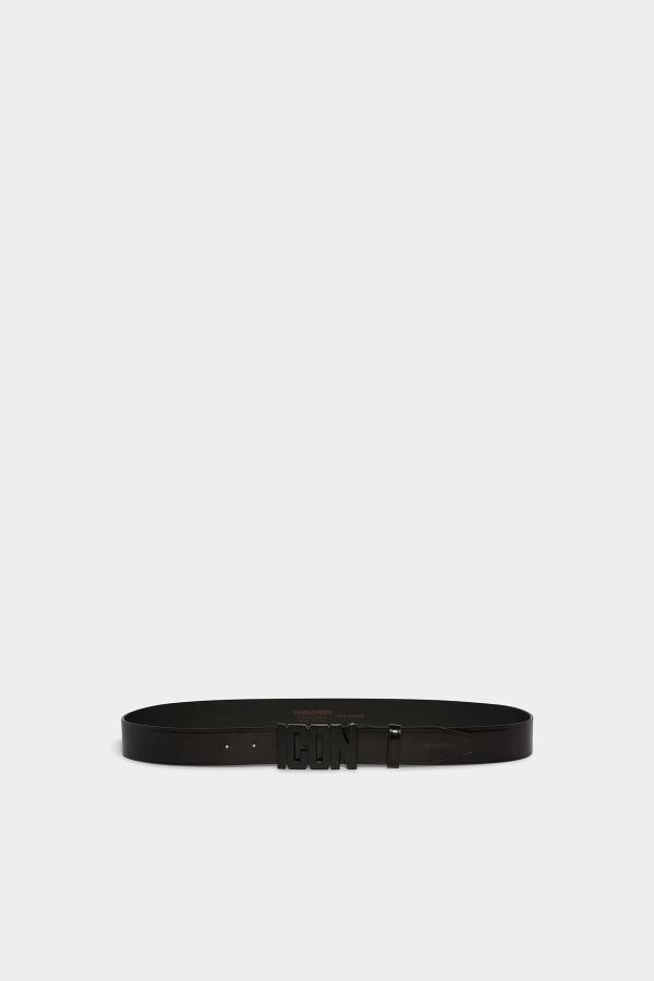 ###BUCKLE: 100% BRASS. BELT: 100% LEATHER.###Go a little bit extra with this Dsquared2 belt. Featuring a chunky ᄀᄚICONᄀᄆ slogan buckle and a solid colour, this belt adds a subtle taste of luxury to any outfit. Pair with distressed jeans for a casual look or a smart pair of chinos to make a statement. Plus you can adjust the fastening for an ideal fit.