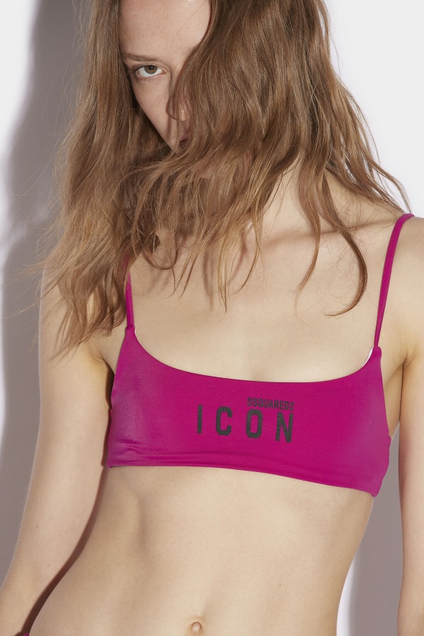 ###80% POLYAMIDE/NYLON, 20% ELASTANE###The model is 5'10' tall and wears a size 8###Get beach ready with this bandeau bikini top. Featuring a prominent ᄀᄚDSQUARED2 ICONᄀᄆ logo on a block-colour background, itᄀᆵs simple but effective.