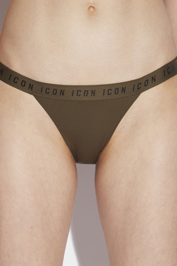 ###80% POLYAMIDE/NYLON, 20% ELASTANE###The model is 5'10' tall and wears a size 8###Look iconic with these bikini briefs. Made from stretch nylon, the Be Icon Swim Brief is super comfortable as well as stylish. The elasticated ᄀᄚICONᄀᄆ tape waistband contrasts beautifully with the block colour main for a sophisticated but cool beach look.