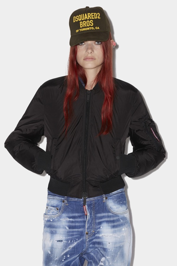 ###MAIN FABRIC: 100% POLYAMIDE/NYLON. LINING: POLYAMIDE/NYLON. PADDING: 100% FEATHER. POCKETS: POLYAMIDE/NYLON. APPLIQUES: 96% POLYESTER, 4% ELASTANE.###The model is 5'10' tall and wears a size 6###Slip on this edgy and contemporary bomber jacket featuring a splattered print with the "DSQUARED2 Icon" lettering emblazoned across the front. Classic cut and detailing you've come to expect from this uncompromising fashion house. Make a strong statement this summer.