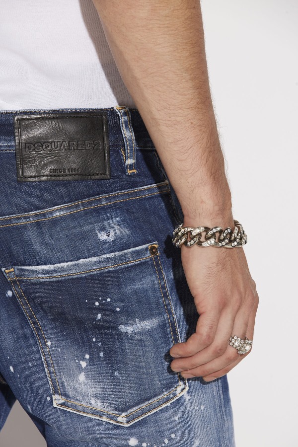###MAIN FABRIC: 92% COTTON, 8% ELASTANE. POCKET LINING: 65% POLYESTER, 35% COTTON. APPLIQUES: 98% COTTON, 2% ELASTANE. APPLIQUES 2: 100% LEATHER.###The model is 6'2" tall and wears a size 38###Give yourself an edge in these stunning distressed effect, faded, 5-pocket denim jeans. Graffiti prints give a resolutely urban vibe. Wear with a white vest top for smouldering summer attitude.