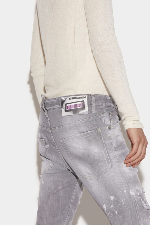 ###MAIN FABRIC: 98% COTTON, 2% SPANDEX POCKET LINING: 65% POLYESTER, 35% COTTON###The model is 6'2" tall and wears a size 38###Skater meets clubber in these edgy, grey wash jeans. The front rips and Dsquared photo patch create a truly versatile look. Ideal for both wild nights out or chill nights in.