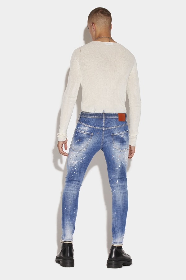 ###MAIN FABRIC: 98% COTTON, 2% SPANDEX POCKET LINING: 65% POLYESTER, 35% COTTON APPLIQUᄄᆭ: 100% CALFSKIN###The model is 6'2" tall and wears a size 38###Step into summer in these stretch denim breeze wash jeans. Paint splatters and "I love" lettering offer an unmistakable Dsquared2 look. Pair with a muscle fit top and chunky boots to complement the slim fit.