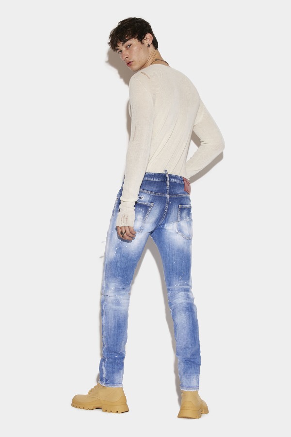 ###MAIN FABRIC: 98% COTTON, 2% SPANDEX POCKET LINING: 65% POLYESTER, 35% COTTON###The model is 6'2" tall and wears a size 38###Make a splash in these unique, mid-rise, medium stretch denims. The prominent rips and splatters and distinctive chino and dark denim patches add a resolutely urban vibe. Complete this casual but edgy look with a low-key white top and chunky boots.
