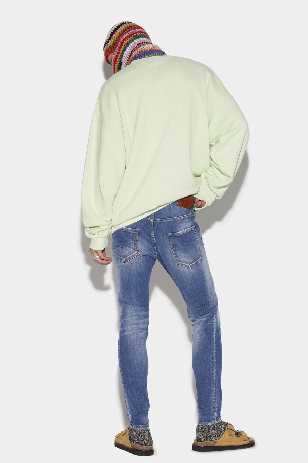 ###MAIN FABRIC: 92% COTTON, 8% ELASTANE. POCKET LINING: 65% POLYESTER, 35% COTTON. APPLIQUES: 100% LEATHER.###The model is 6'2" tall and wears a size 38###Be super sexy in these tight-fit, faded effect, 5-pocket denim jeans. A Dsquared2 red tag to the zipper and Dsquared2 logo above the back pocket bring authentic Dsquared2 styling. For laid-back sexy summer vibes, just pair with a Dsquared2 sweatshirt.