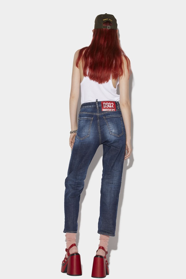###MAIN FABRIC: 98% COTTON, 2% ELASTANE. LINING: 65% POLYESTER, 35% COTTON. MAIN APPLIQUES: 66% POLYURETHANE, 27% POLYESTER, 7% COTTON.###The model is 5'10' tall and wears a size 6###Need to top-up on wardrobe basics? These jeans are a must-have in every womanᄀᆵs wardrobe. Highly versatile and comfortable to wear, these jeans will be a regular go-to throughout the week. Finished with rolled-up cuffs, multiple pockets and the ᄀᆴDSQ2 BROTHERSᄀᆵ label above the back pocket. Donᄀᆵt forget the forever fashionable faded denim effect that adds an additional element to the colourway.