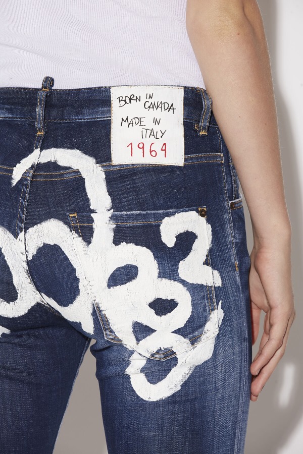 ###MAIN FABRIC: 98% COTTON, 2% ELASTANE. POCKET LINING: 65% POLYESTER, 35% COTTON.###The model is 5'10' tall and wears a size 6###Bring urban attitude in these dash washed five-pocket denim jeans, featuring a graffiti print across the rear and a painted D2 1964 detail around the left ankle. These cropped jeans make a statement on their own, and can be simply paired with a plain white tee for instant effortless swagger.