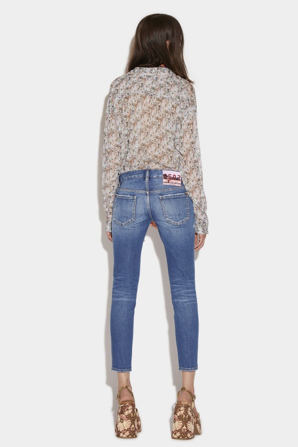 ###MAIN FABRIC: 99% COTTON, 1% SPANDEX POCKET LINING: 65% POLYESTER, 35% COTTON###The model is 5'10' tall and wears a size 6###Opt for a laid-back summer look in these Jennifer cropped jeans. Features a mid wash with ripped details for unmistakable Dsquared2 styling. Pair with a black racer back vest to channel the sports luxe vibe or floral blouse for a feminine twist.