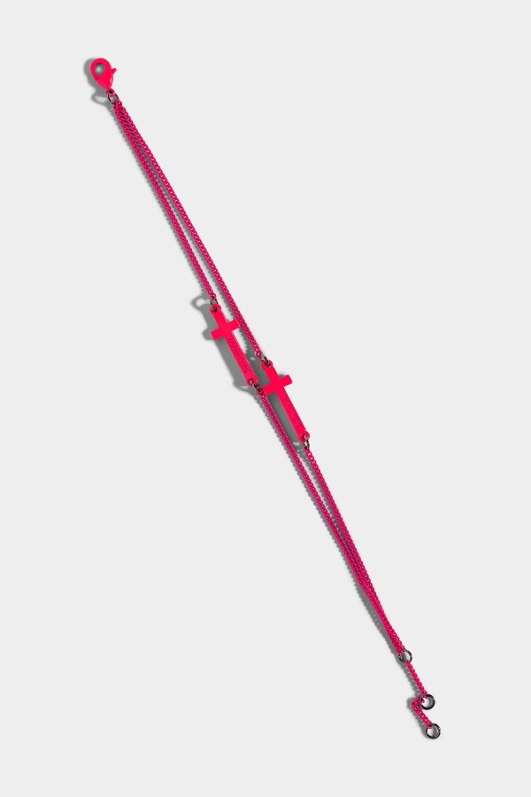 ###90% BRASS, 10% ALLOY###Level up your accessory game with the Jesus Bracelets. Featuring two lacquered metal chains, this bracelet is eye-catching without being too showy. The cross pendants feature debossed ᄀᄚDsquared2ᄀᄆ lettering for a subtle luxe feel.