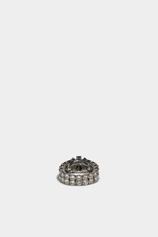 ###90% ALLOY, 10% CRYSTALS.###Add the Sparkle Ring to your stacked ring look for some extra shine. The rhinestones in this Dsquared2 ring will twinkle beautifully on your hand whether in the sun or under the flashing lights in a night club.