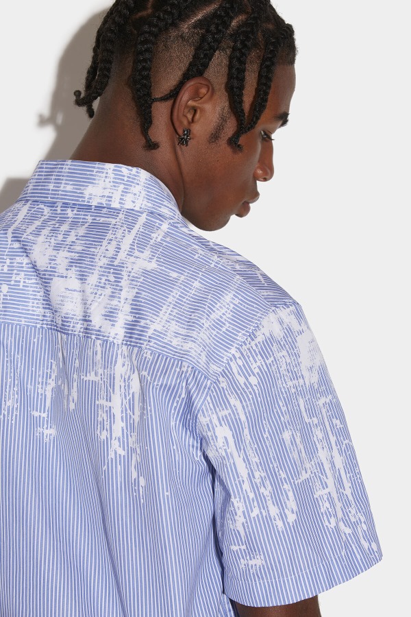 ###100% COTTON###The model is 6'2" tall and wears a size 38###Give some attitude to your wardrobe with the Bowling Shirt. Made from striped capri, this Dsquared2 shirt is a cut above the rest. Plus, the bleached detailing on the top part gives this piece an edgy look.
