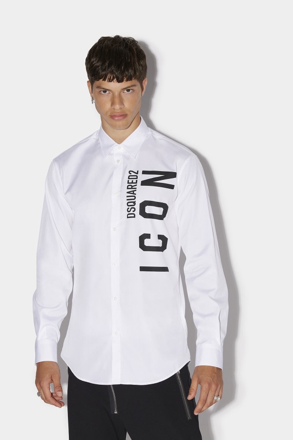 ###100% COTTON###THE MODEL IS 6'2" TALL AND WEARS A SIZE 38###Look sharp and dapper in this poplin shirt with statement DSQUARED2 ICON lettering emblazoned down the front. Crisp lines and tailoring, this contemporary take on a classic collar shirt has a modern twist. Long sleeves with buttoned cuffs finish off the grown-up look.