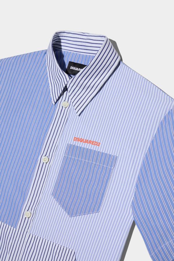 ###100% COTTON###In typical DSQUARED2 style, this kids' shirt gives a slightly different take on a classic striped shirt. It is made of a patchwork of contrast stripes and features kangaroo pockets, but still has traditional shirt features like classic collar and short sleeves, button closure and back box pleat. "DSQUARED2" confirms its origins. Made from cotton oversized fit.