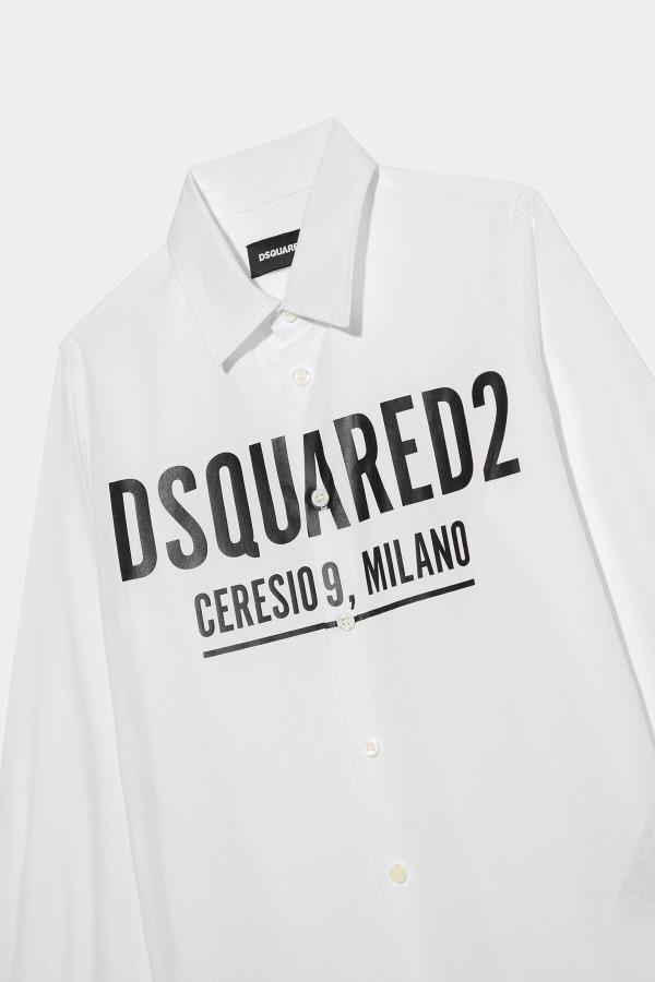 ###100% COTTON###Cotton poplin shirt that's classic in every way except for the print splashed over the front, making the design aspirations very clear. The maxi "Dsquared2 Ceresio 9, Milano" print is a style statement and an attention-grabbing detail. Classic collar and button fastening at the front and cuffs point to a traditional-style shirt, just like the ones Dad wears.
