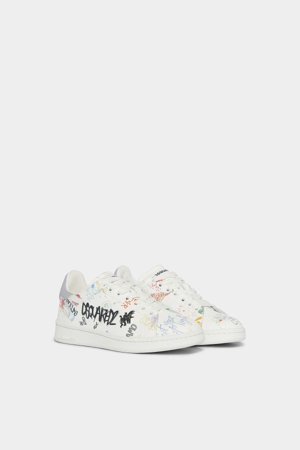 ###UPPER: 100% LEATHER. LINING: 50% LEATHER, 50% COTTON. SOLE: 100% ELASTODIENE.###Sneakerheads won't be able to resist this unique lace-up pair featuring brand logo and other elements in graffiti design for the ultimate street style.