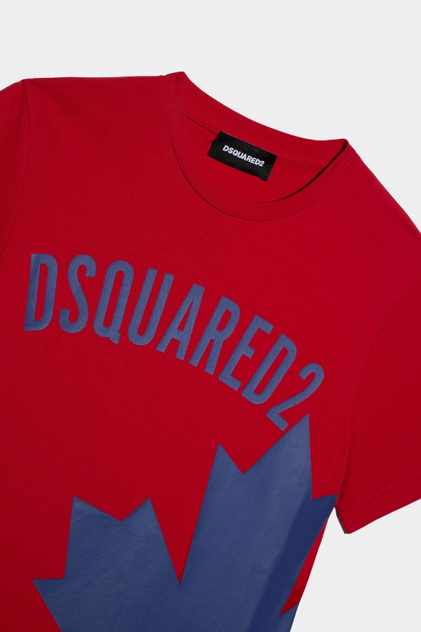 ###95% COTTON, 5% ELASTANE.###Kids make a bold statement in this strikingly simple T-shirt featuring the label's signature maple leaf and "DSQUARED2" lettering. Made of stretch cotton jersey in a relaxed fit with crew neck and short sleeves.