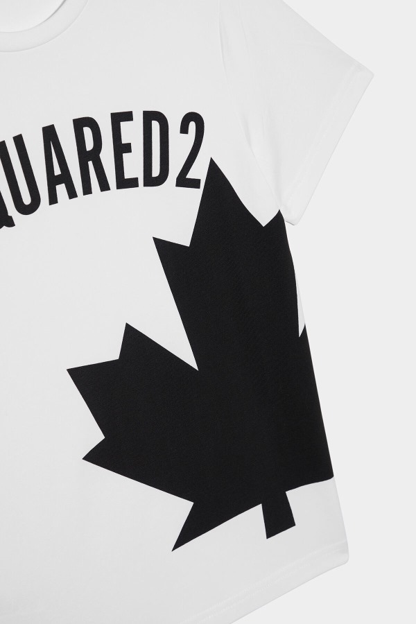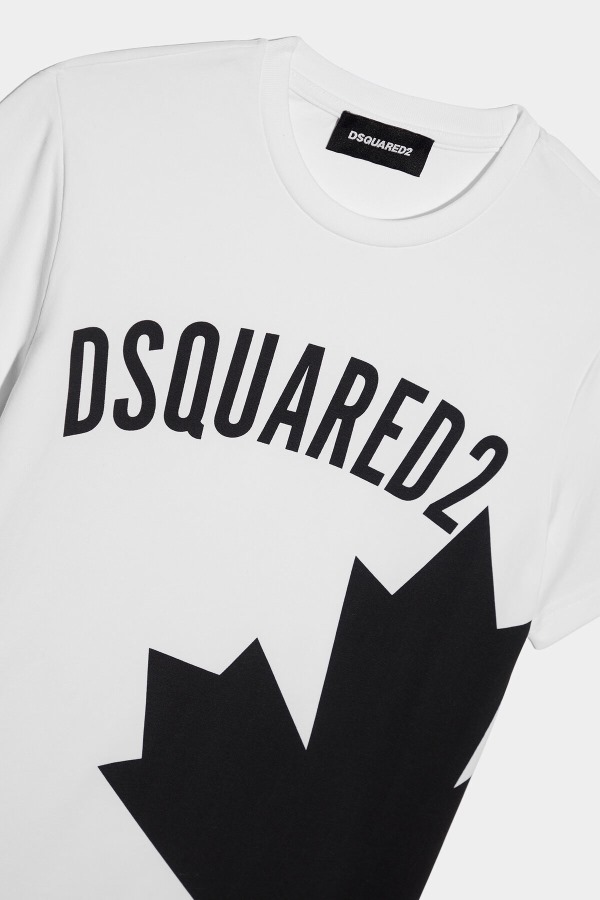 ###95% COTTON, 5% ELASTANE###Kids make a bold statement in this strikingly simple T-shirt featuring the label's signature maple leaf and "DSQUARED2" lettering. Made of stretch cotton jersey in a relaxed fit with crew neck and short sleeves.