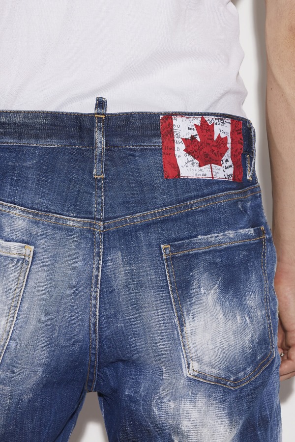 ###MAIN FABRIC: 98% COTTON, 2% ELASTANE. LINING: 65% POLYESTER, 35% COTTON.###The model is 6'2" tall and wears a size 32###These stunning, 5-pocket denim shorts sport a faded and distressed effect. A Dsquared2 red tag to the zipper and graffitied maple leaf flag above the back pocket give an urban edge. For casual summer chic, pair with a plain white tee.