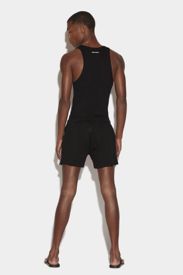 ###MAIN FABRIC: 100% COTTON###The model is 6'2" tall and wears a size M###These loose fit shorts come in a mesh cotton jersey for total comfort. A contrasting Dsq2 address logo on the front gives an edgy attitude. Wear with our classic Dsquared2 sliders for effortless poolside chic.
