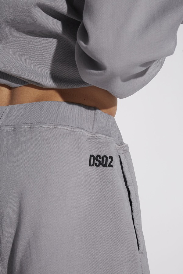 ###MAIN FABRIC: 70% COTTON, 28% LYOCELL, 2% ELASTANE. SECONDARY FABRIC: 99% COTTON, 1% ELASTANE. POCKET LINING: 100% COTTON.###The model is 6'2" tall and wears a size M###These loose fit midi sweat shorts come in sweatshirt fleece. A Dsquared2 logo above the back pocket gives an urban edge. Wear with our classic Dsquared2 sliders for effortless poolside chic.