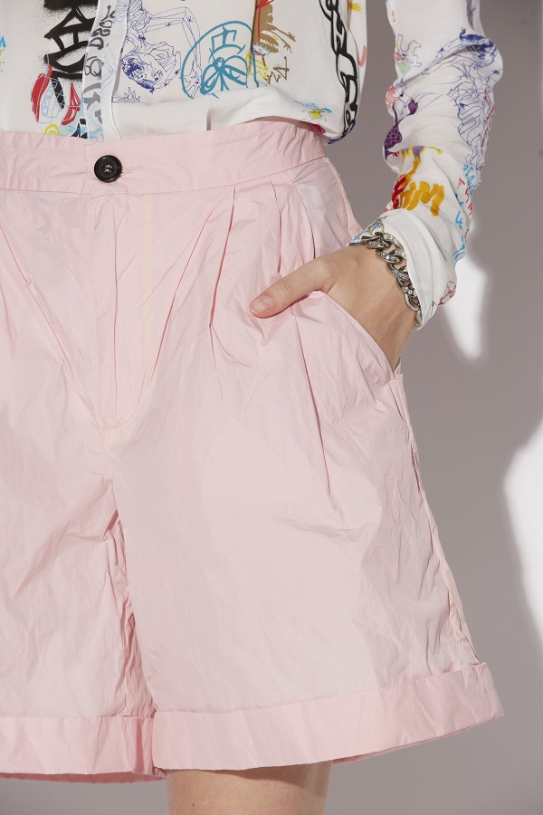 ###68% POLYESTER, 32% POLYAMIDE/NYLON###The model is 5'10' tall and wears a size 6###Rock the DSQUARED2 aesthetic in this pair of technical shorts, a perfect pop of colour for summer days. The feminine colour contrasts with the structured design, and the understated shorts are finished off with a simple button fastening and small metal plaque.