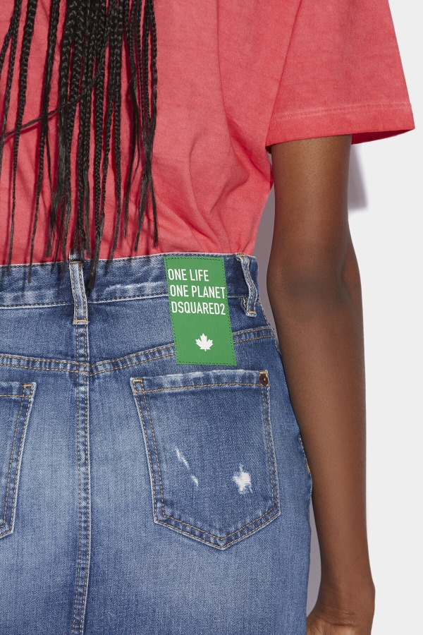 ###MAIN FABRIC: 98% COTTON, 2% ELASTANE. POCKET LINING: 65% POLYESTER, 35% COTTON.###The model is 5'10' tall and wears a size 6###Unleash your inner rebel and grow your denim collection with this skirt and its retro rips and faded wash. The unique green tab and bold "One Life, One Planet" message at centre stage endow it with our distinctive house style.