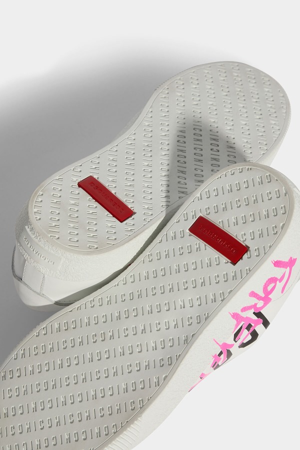 ###UPPER: 100% LEATHER. LINING: 100% LEATHER. SOLE: 100% ELASTODIENE.###Stay iconic. These plain lace-up sneakers provide the perfect backdrop for their bold "ICON" lettering with "forever" graffiti style print.