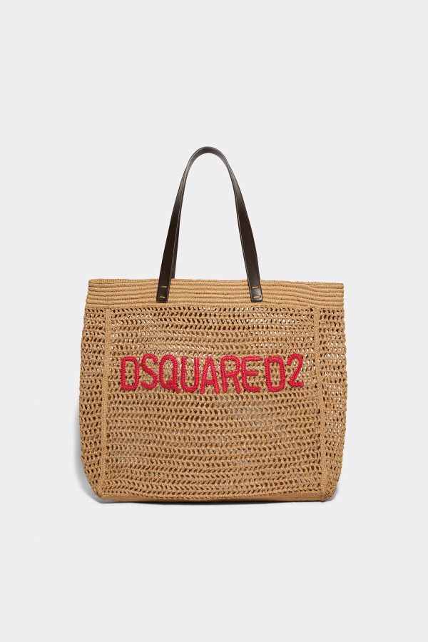 ###97% RAFFIA, 3% COWHIDE###This raffia bag with leather handles will be your go-to for vacation shopping or a day at the beach. The outside features raised DSQUARED2 lettering while the inside has a debossed leather logo patch.