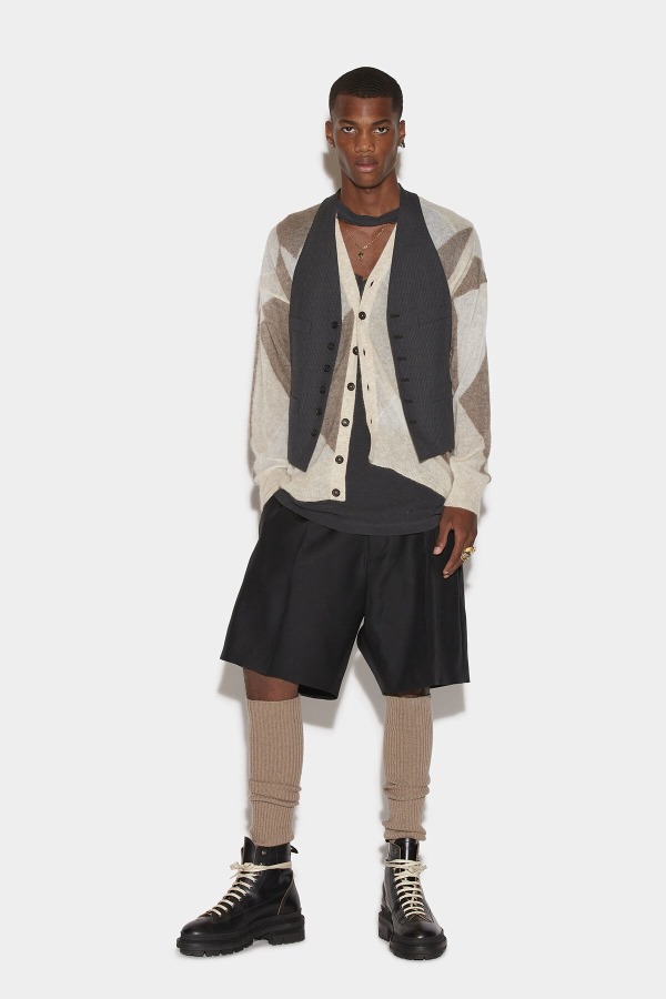 ###MAIN FABRIC: 100% VIRGIN WOOL. LINING: 100% POLYESTER. POCKET LINING: 100% COTTON.###The model is 6'2" tall and wears a size 38###Look a little bit boujee but understated with the Classic Vest by Dsquared2. This pinstripe wool vest features a contrast polyester back and racerback silhouette to give it an edge. Layer over the top of a colourful shirt for a modern take on a classic look.