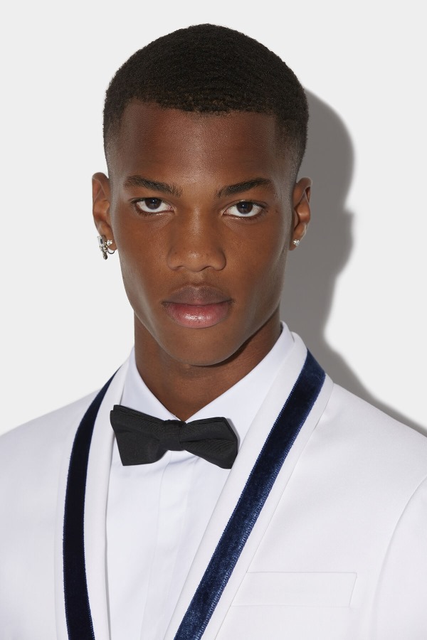 - SHAWL-STYLE LAPELS WITH CONTRASTING STRIPE