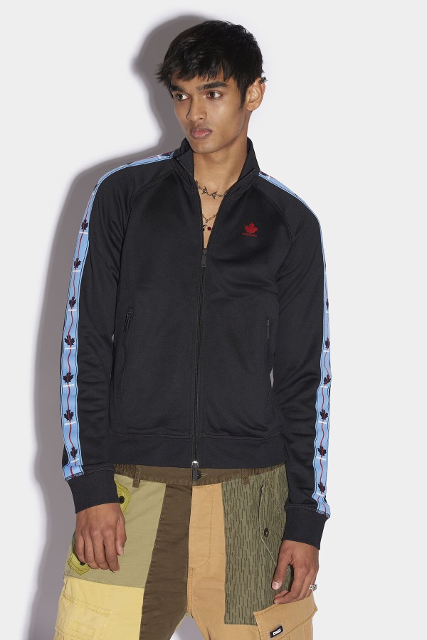 ###MAIN FABRIC: 55% POLYAMIDE/NYLON, 45% COTTON. SECONDARY FABRIC: 88% POLYAMIDE/NYLON, 12% ELASTANE. POCKET LINING: 100% COTTON###The model is 6'2" tall and wears a size M###Get ready to rep Canada with the Leaf Tape Zip Sweater. Made from technical fleece, this cosy zip-up features a maple leaf tape detail for a sporty feel. Pair with patchwork pants for a bold statement.