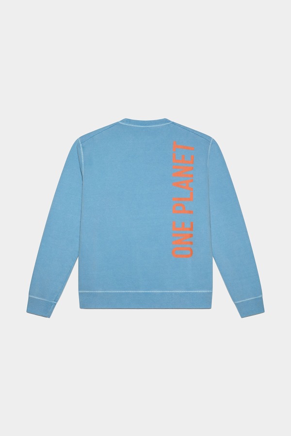 ###MAIN FABRIC: 100% COTTON. SECONDARY FABRIC: 94% COTTON, 6% ELASTANE.###The model is 6'2" tall and wears a size M###This cool sweatshirt made from 100% recycled organic unbrushed cotton fleece is the embodiment of sustainable style. Features a crew neck and V-insert and ribbed trims. Its unique design includes a "Dsquared2 Smiley One Life" print on the front and a "One Planet" print on the back.