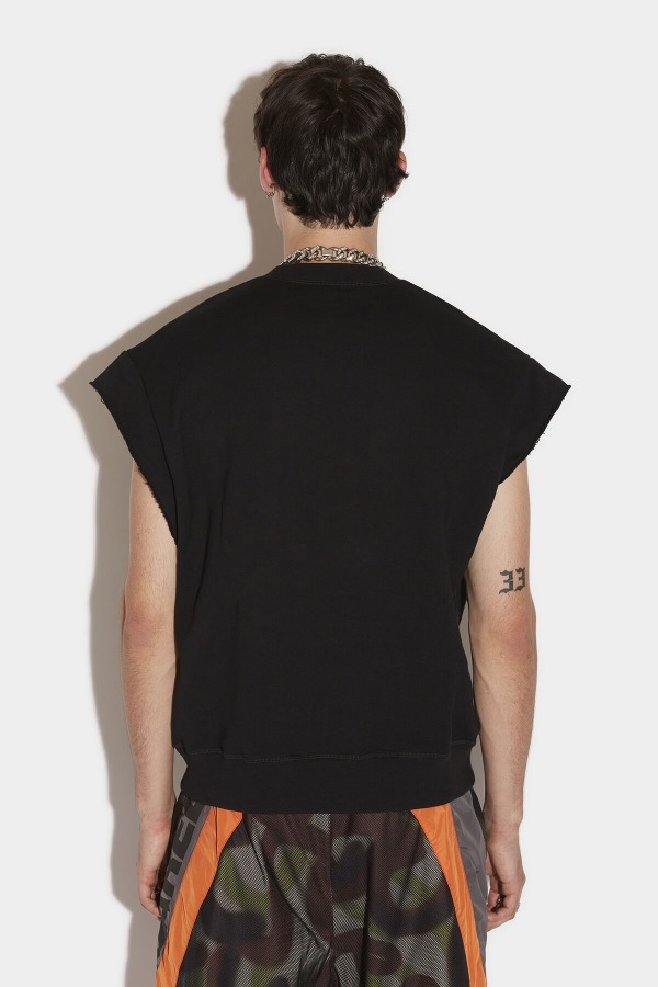 ###MAIN FABRIC: 100% COTTON. SECONDARY FABRIC: 99% COTTON, 1% ELASTANE.###The model is 6'2" tall and wears a size M###Channel Rocky Balboa in this comfy short-sleeved sweatshirt with discreet tonal logo. Cut from a sweatshirt fleece with a fleece lining, finished with a raw hem on the armholes. Wear with wide leg denim shorts and chunky trainers for a laid-back Californian vibe.