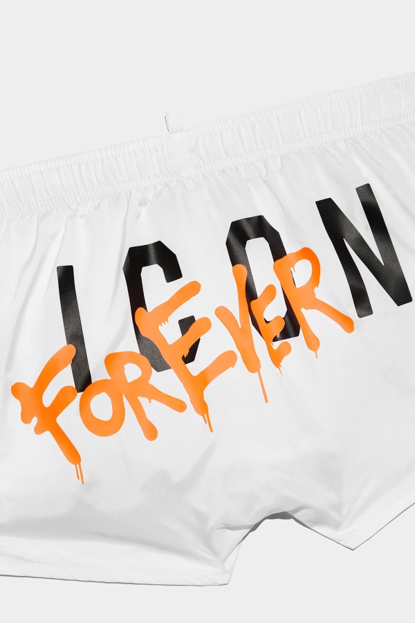 ###MAIN FABRIC: 100% POLYESTER. LINING: 100% POLYESTER###Comfortable easy-going relaxed-fit boxers with a striking print declaring "ICON FOREVER" with a difference: the "FOREVER" is in a supremely on-trend grafitti style.
