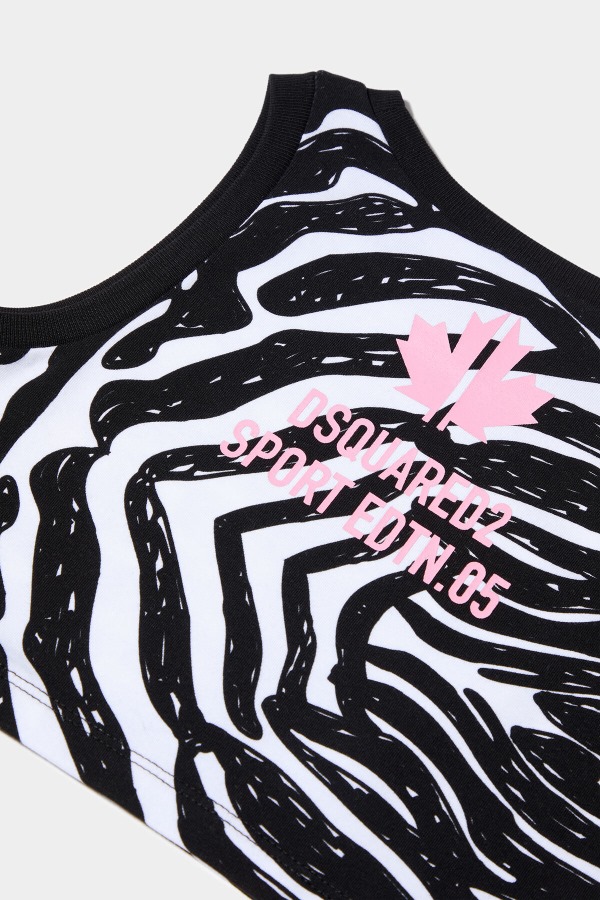 ###MAIN FABRIC: 90% COTTON, 10% ELASTANE. HEMS: 100% COTTON.###Girls will go wild for this stretch cotton jersey with eye-catching all-over zebra print and contrast "SPORT EDTN.05" print on the back.