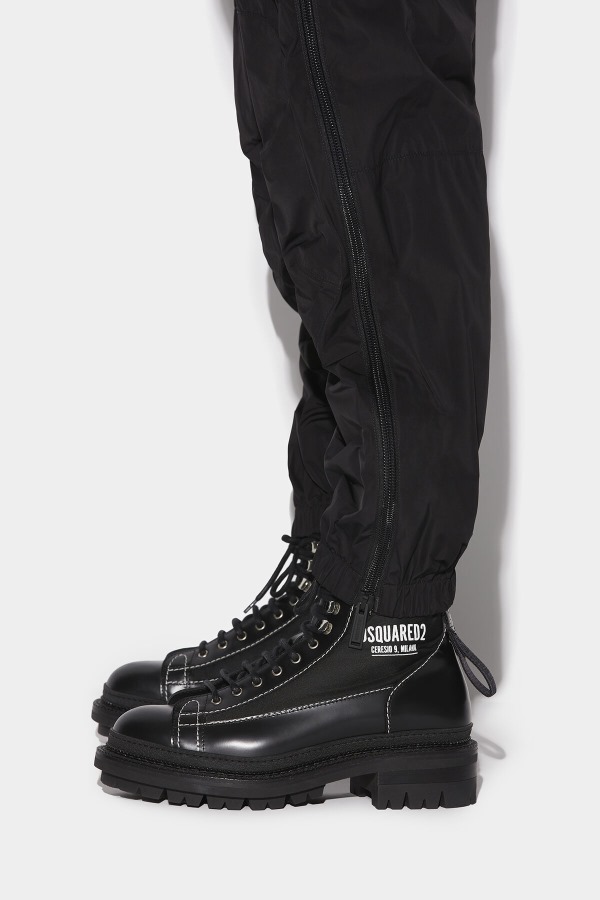 ###MAIN FABRIC: 100% POLYESTER. SECONDARY FABRIC: 100% POLYAMIDE/NYLON. APPLIQUES: 100% GLASS. COATING: 100% POLYURETHANE.###The model is 6'2" tall and wears a size 32###Work the urban aesthetic in these sporty combat trousers. The tapered leg and cuffed ankle offers a very flattering fit, complemented with handy utility pockets. Pair with a plaid shirt for insouciant casual chic.
