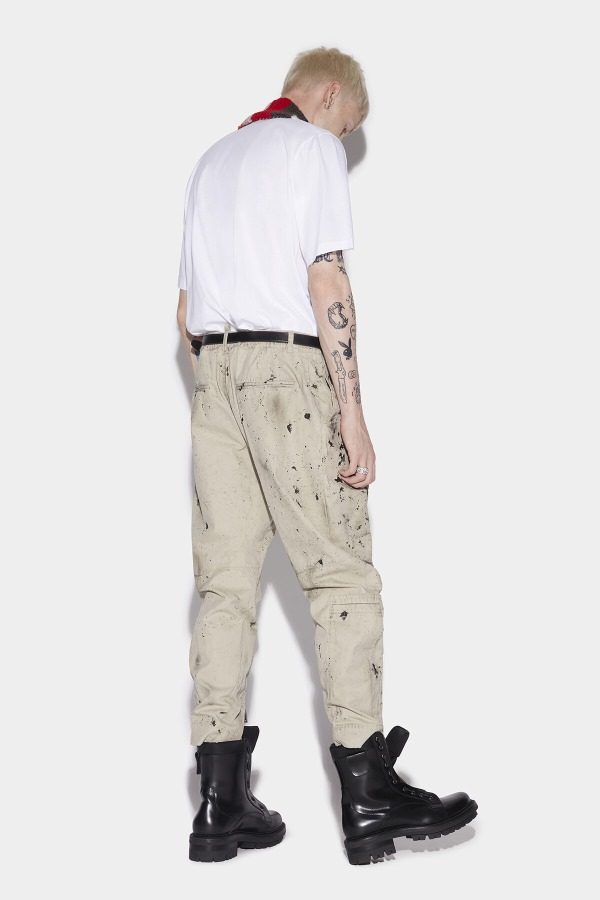###MAIN FABRIC: 100% COTTON. POCKET LINING: 100% COTTON.###The model is 6'2" tall and wears a size 32###Channel squat chic this summer in these Dsquared2 cargo trousers. Cut from gabardine with an all-over paint splatter detail for edgy styling. Pair with a cartoon print tee or distressed jumper for a laid-back grungy look
