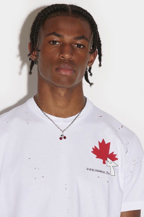 ###MAIN FABRIC: 100% COTTON SECONDARY FABRIC: 100% COTTON###The model is 6'2" tall and wears a size M###Enter the Canuck spirit with this tee. With a boxy fit, crew neck and short fit, this simple t-shirt is elevated by the punctured detailing and click maple leaf print on the left chest.