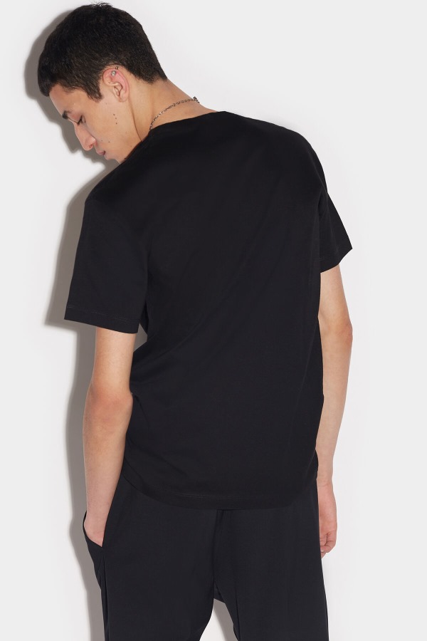###MAIN FABRIC: 100% COTTON. SECONDARY FABRIC: 100% COTTON.###The model is 6'2" tall and wears a size M###The classic tee is reworked in Dsquared2 style for this summer. Features a striking Dsq2 paint drip logo on a plain-dye base. Pair with parachute trousers or faded wash jeans for a laid-back vibe.